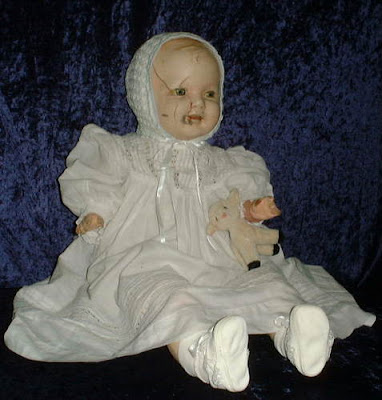 Boneka dengan ukuran bayi asli ini adalah boneka terseram yang dapat kita lihat. Dengan kulit berwarna merah an bola mata kaca berwarna biru terang. Kelucuannya tertutupi oleh iblis yang bersemayam di boneka tersebut. Boneka ini sangat tidak disarankan untuk dijadikan maenan anak anda ^^.
